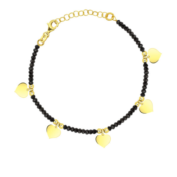 Bransoletka srebrna pozłacana z sercami i czarnymi kryształkami