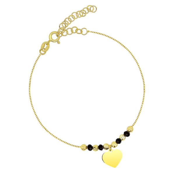 Bransoletka srebrna pozłacana z serduszkiem i czarnymi koralikami