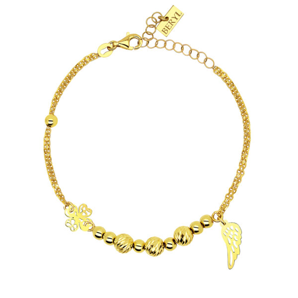 Bransoletka srebrna pozłacana ze skrzydłem i koniczynką