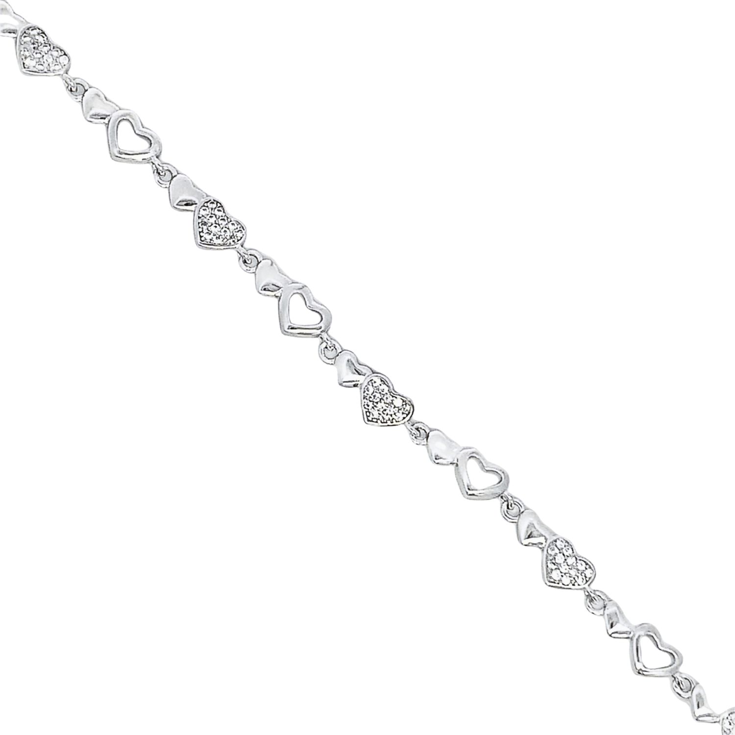 Bransoletka srebrna serduszka z cyrkonią  wykonane z najwyższej próby srebra 925 – bez niklu, nie uczulają.