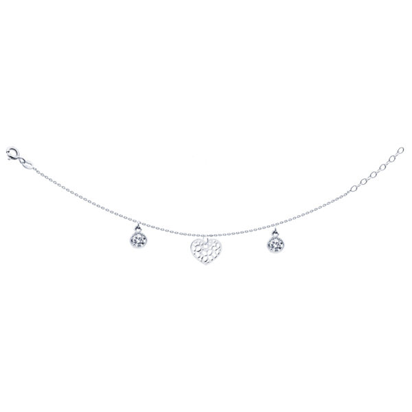 Bransoletka srebrna wiszące serce ażurowe i cyrkonie białe