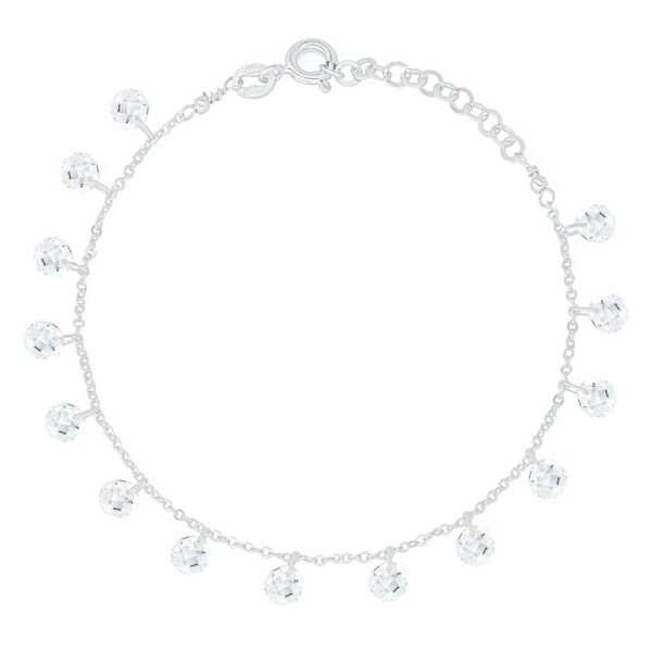 Bransoletka ozdobiona kryształkami Swarovski. Bransoletka wykonana ze srebra próby 925, dodatkowo uszlachetniona warstwą rodu. Długość bransoletki 16-19 cm.