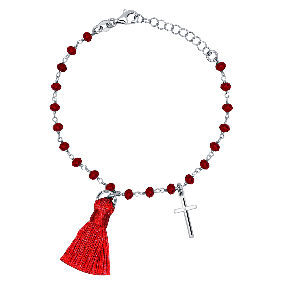 Bransoletka srebrna z krzyżem czerwony chwost