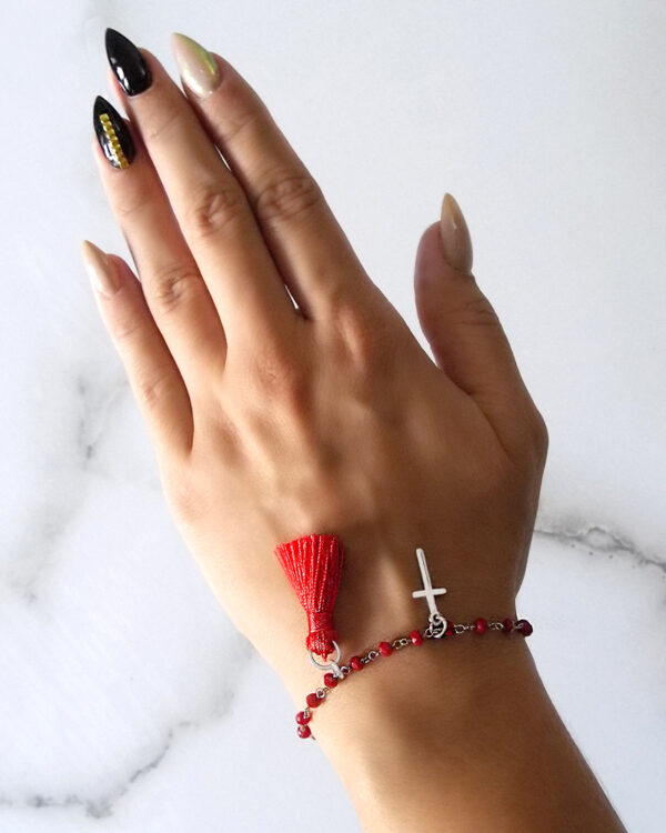 Bransoletka wykonana ze srebra próby 925, dodatkowo uszlachetniona 3 warstwami szlachetnego rodu, ozdobiona kryształkami Swarovskiego oraz chwostem. Długość bransoletki: 15-19 cm. Wielkość zawieszki: 9×15 mm.