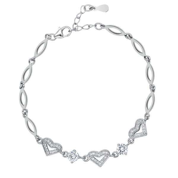 Bransoletka z Serduszkami i Cyrkoniami wykonana ze Srebra Próby 925. Bransoletka uszlachetniony warstwą rodu. Bransoletka ozdobiona Białymi Cyrkoniami o brylantowym szlifie. Długość bransoletki: 16-19 cm. Bransoletka z Cyrkoniami w subtelny sposób podkreśli nadgarstek. Bransoletka z Serduszkiem i Cyrkoniami idealnie uzupełni Twoją stylizację nadając jej Kobiecości i zmysłowości.
