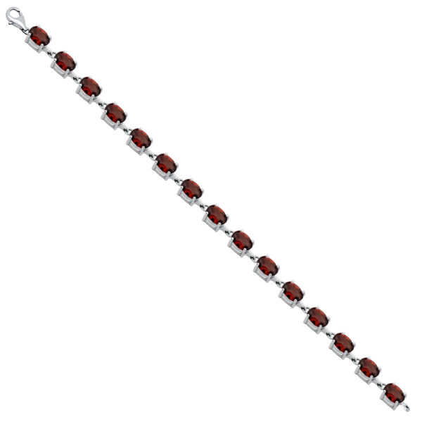 Bransoletka srebrna zdobiona granatem wykonana z najwyższej srebra próby 925 – bez dodatku niklu, nie uczula. Biżuteria modowa pokryta 3 warstwami szlachetnego rodu. Długość bransoletki: 20,5 cm. Biżuteria ozdobiona naturalnym granatem o szlifie owalnym o wielkości: 5x7mm. Wyrób jubilerski wysokiej jakości wykonany przez mistrzów jubilerstwa z ogromną precyzją oraz dbałością o detale.