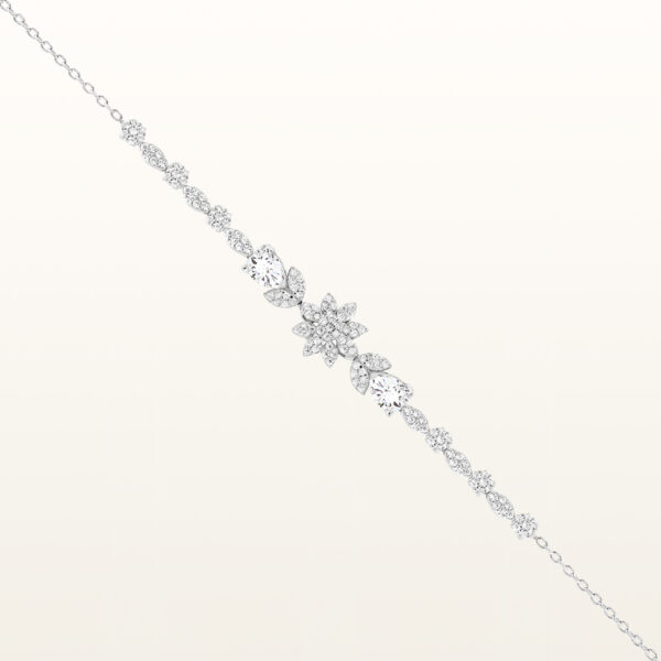 Bransoletka wysadzana cyrkoniami elegancka srebrna wykonana z najwyższej próby srebra 925 – bez niklu, nie uczula. Biżuteria dodatkowo pokryta 3 warstwami szlachetnego rodu. Długość bransoletki regulowana: 18,5-21cm. Ozdobiona cyrkoniami o szlifie brylantowym o przejrzystości: AAAAA+, klasa pierwsza. Wysokiej klasy cyrkonia nadaje delikatny błyszczący efekt. Wyrób jubilerski wysokiej jakości wykonany przez mistrzów jubilerstwa z ogromną precyzją oraz dbałością o detale.