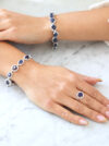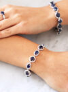 Bransoletka wysadzana szafirami oraz cyrkoniami srebrna