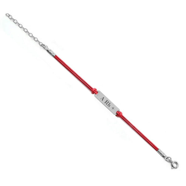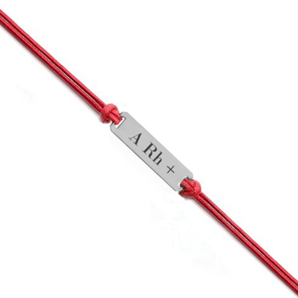 Bransoletka z grupą krwi srebrna A Rh + na czerwonym sznurku. Biżuteria wykonana z najwyższej próby srebra 925 – bez dodatku niklu, nie uczula. Biżuteria modowa pokryta 3 warstwami szlachetnego rodu. Do wykonania bransoletki użyto czerwonego bawełnianego jubilerskiego sznurka powleczonego utwardzonym woskiem, dzięki czemu bransoletka jest trwała, sznurek się nie zadziera i przetrwa długie lata. Bransoletka regulowana o długości 17-20 cm. Bransoletka grawerowana z Twoją grupą krwi.