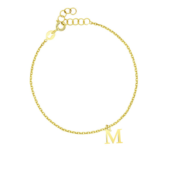 Bransoletka z literką M srebrna pozłacana. Biżuteria modowa wykonana z najwyższej próby srebra 925 – bez dodatku niklu, nie uczula. Bransoletka dodatkowo uszlachetniona 3 warstwami 24 karatowego złota. Wielkość litery M:10×10 mm. Literka M o gładkiej, polerowanej i błyszczącej powierzchni, zawieszona na łańcuszku o splocie typu ankier, regulowanym o długości od 16 do 19 cm. Łańcuszek o subtelnym wyglądzie a jednocześnie bardzo mocnym splocie, odpornych na zerwania oraz uszkodzenia. Wyrób jubilerski wysokiej jakości wykonany przez mistrzów jubilerstwa z ogromną precyzją oraz dbałością o detale.