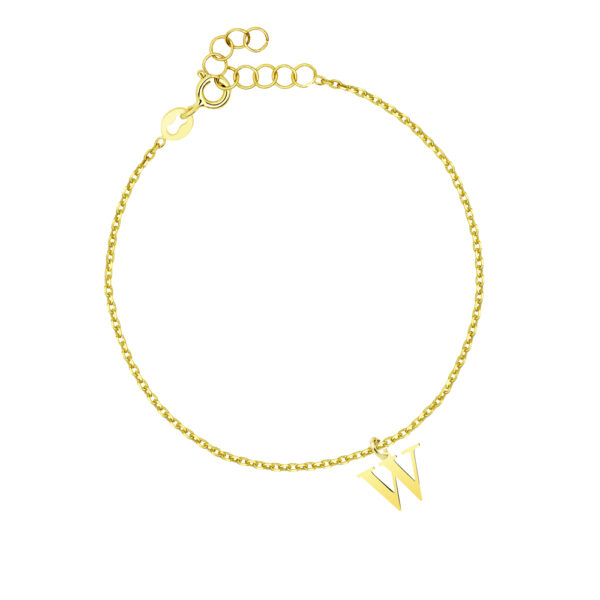 Bransoletka z literką W srebrna pozłacana. Biżuteria modowa wykonana z najwyższej próby srebra 925 – bez dodatku niklu, nie uczula. Bransoletka dodatkowo uszlachetniona 3 warstwami 24 karatowego złota. Wielkość litery W: 10×10 mm. Literka W o gładkiej, polerowanej i błyszczącej powierzchni, zawieszona na łańcuszku o splocie typu ankier, regulowanym o długości od 16 do 19 cm. Łańcuszek o subtelnym wyglądzie a jednocześnie bardzo mocnym splocie, odpornych na zerwania oraz uszkodzenia. Wyrób jubilerski wysokiej jakości wykonany przez mistrzów jubilerstwa z ogromną precyzją oraz dbałością o detale.