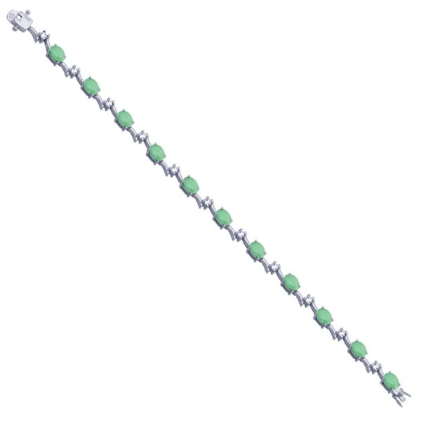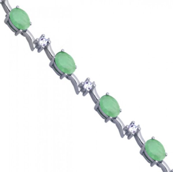 Bransoletka wykonana ze srebra próby 925, dodatkowo uszlachetniona warstwą rodu. Bransoletka ozdobiona kamieniem szlachetnym- Szmaragdem oraz cyrkoniami. Kamień zawiera inkluzje. Wielkość kamieni 6×4 mm. Obwód bransoletki 18,5 cm. Szmaragd, odmiana berylu to jeden z najcenniejszych kamieni szlachetnych. Nazwa pochodzi od greckiego słowa „smaragdos”, czyli „zielony”. To symbol harmonii, wzrostu oraz świeżości.