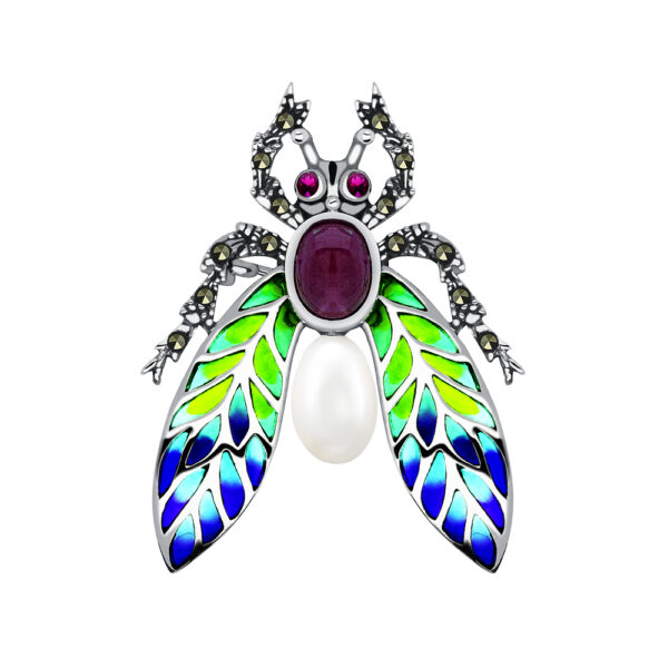Perła umieszczona w odwłoku broszki dodaje jej delikatności i elegancji. Perła jest uznawana za symbol piękna, niewinności i klasy. Jej naturalny połysk i wyjątkowy odcień nadają broszce subtelności i luksusowego charakteru.