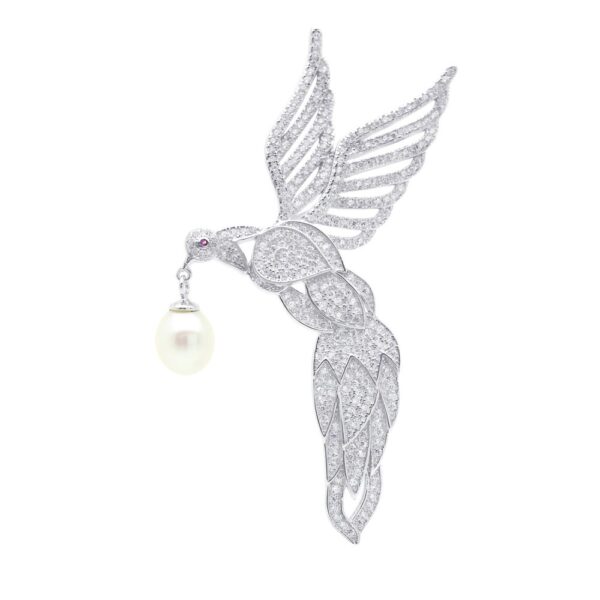 Jednym z najpiękniejszych elementów tej broszki jest naturalna perła, która zwisa z dzioba kolibra. Perła symbolizuje piękno i elegancję, a ta naturalna perła dodaje broszce dodatkowego blasku i wyjątkowości.