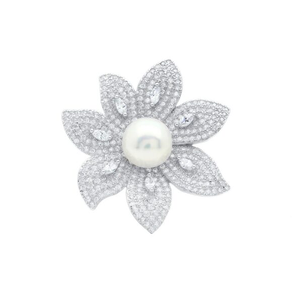 Broszka srebrna kwiatek z perłą wykonana z najwyższej próby srebra 925 – bez niklu, nie uczula. Biżuteria dodatkowo pokryta 3 warstwami szlachetnego rodu. Wielkość broszki: 35×35 mm.Nasza piękna broszka w kształcie kwiatu ma wyjątkowy design jest podkreślony cyrkoniami i naturalną perłą. Ta wyjątkowa biżuteria łączy w sobie elegancję, piękno i klasę, idealnie pasując do każdej okazji.