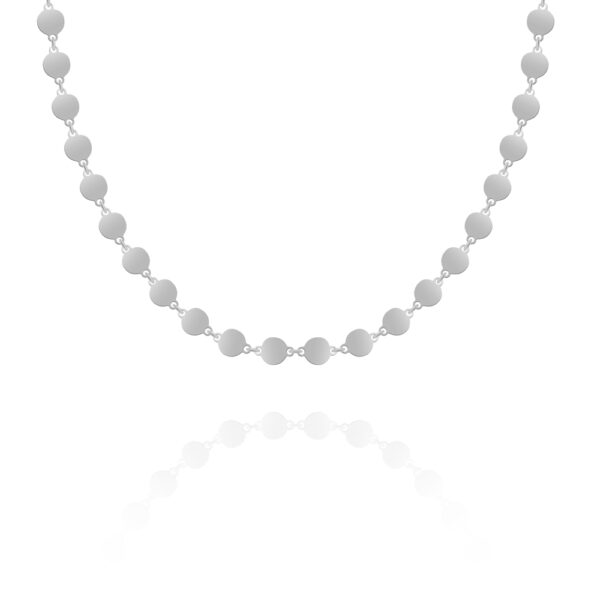 Choker na szyję srebrny kółeczka wykonany z najwyższej próby srebra 925 – bez dodatku niklu, nie uczula. Biżuteria modowa pokryta 3 warstwami szlachetnego rodu. Długość chokera 35-45 cm. Precioza ozdobiona malutkimi kółeczkami.
