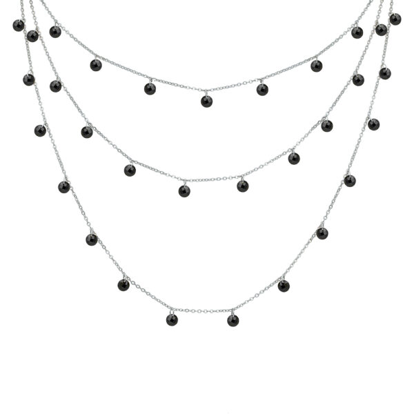 Choker na szyję srebrny potrójny z czarnymi kryształkami