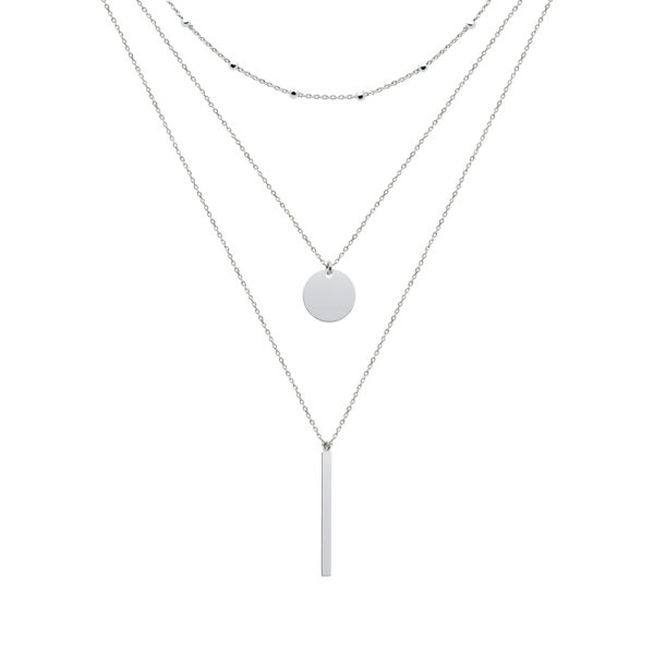 Choker na szyję srebrny potrójny z okrągłą blaszką