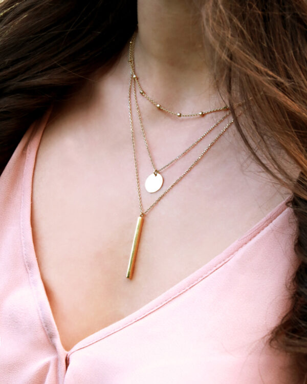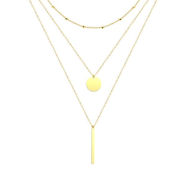 Choker na szyję srebrny pozłacany potrójny z okrągłą blaszką