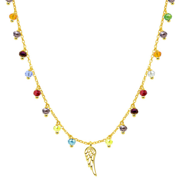 Choker na szyję srebrny pozłacany skrzydło z kolorowymi koralikami