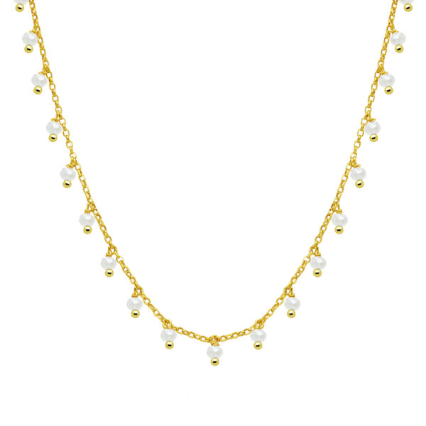 Choker na szyję srebrny pozłacany z białymi koralikami