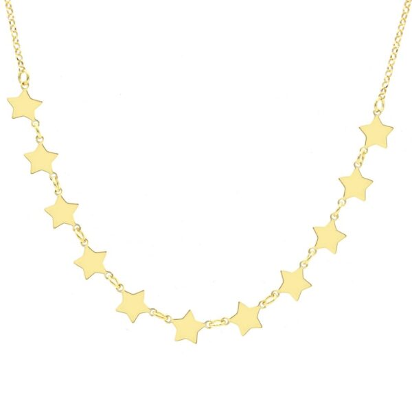 Naszyjnik Choker z Gwiazdkami wykonany ze Srebra Próby 925. Naszyjnik uszlachetniony 3 mikronami 24 karatowego złota. Długość chokera: 37-40 cm. Naszyjnik Choker ozdobiony Gwiazdkami. Jego wyjątkowy design podkreśli Twoją stylizację nadając jej elegancji oraz wyjątkowości. Naszyjnik Choker pieknie układa się na szyi! Naszyjnik Choker z Gwiazdkami to absolutny Hit tego sezonu.