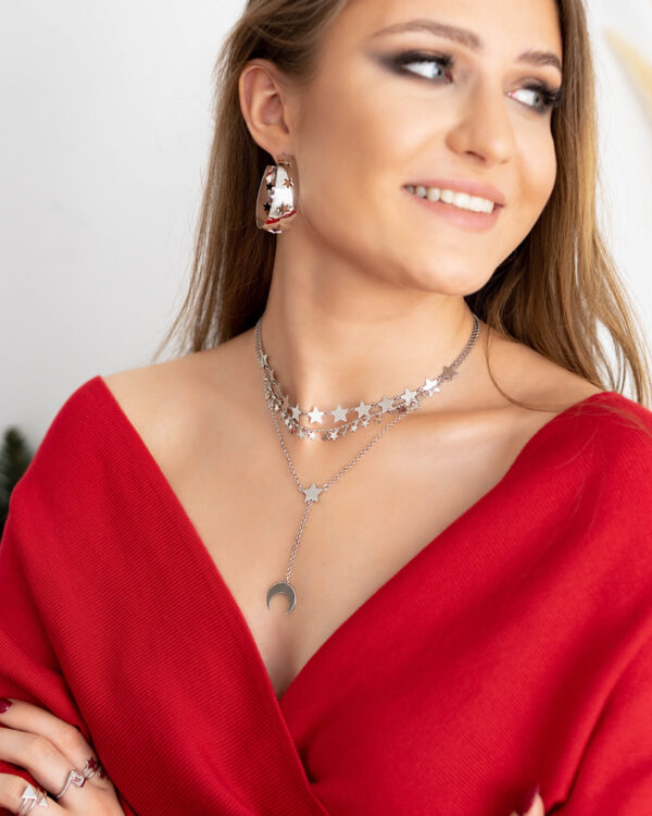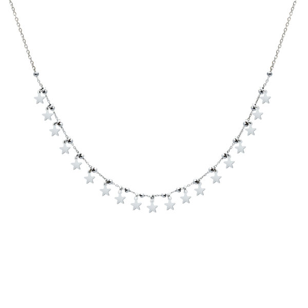 Naszyjnik Choker z Gwiazdkami wykonany ze Srebra Próby 925. Naszyjnik uszlachetniony warstwą rodu. Długość Chokera: 36-40 cm. Naszyjnik Choker ozdobiony zawieszkami w kształcie Gwiazdek. Wielkość Gwiazdki: 6×4 mm. Jego wyjątkowy design podkreśli Twoją stylizację nadając jej wyrazistego charakteru. Naszyjnik Choker z Gwiazdkami doskonale uzupełni dzienną jak i wieczorną stylizację! Naszyjnik Choker to absolutny Must Have tego sezonu!