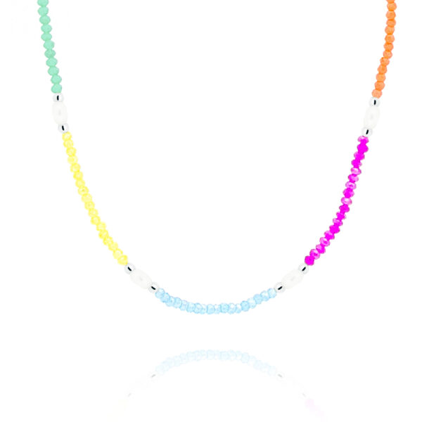 Choker na szyję srebrny z kolorowymi kryształkami swarovskiego wykonany z najwyższej próby srebra 925 – bez dodatku niklu, nie uczula. Naszyjnik o regulowanej długości: 40-45 cm. Precioza ozdobiona kolorowymi kryształkami swarovskiego. Wyrób jubilerski wysokiej jakości wykonany przez mistrzów jubilerstwa z ogromną precyzją oraz dbałością o detale.