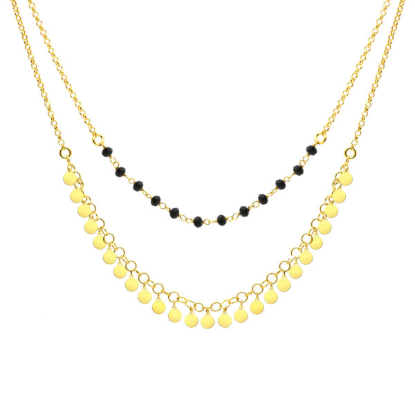 Choker podwójny srebrny z blaszkami i czarnymi koralikami