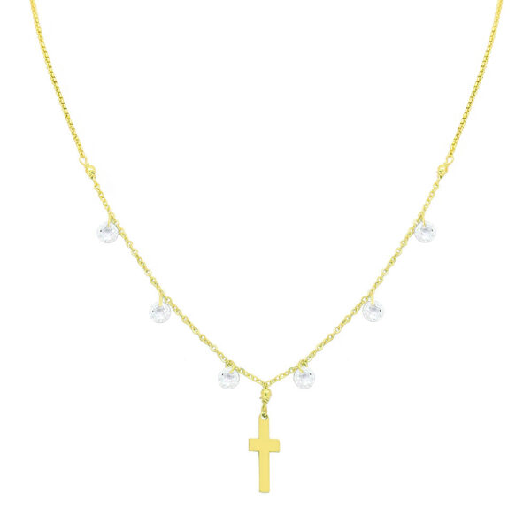 Choker srebrny pozłacany z krzyżem i białymi kryształkami