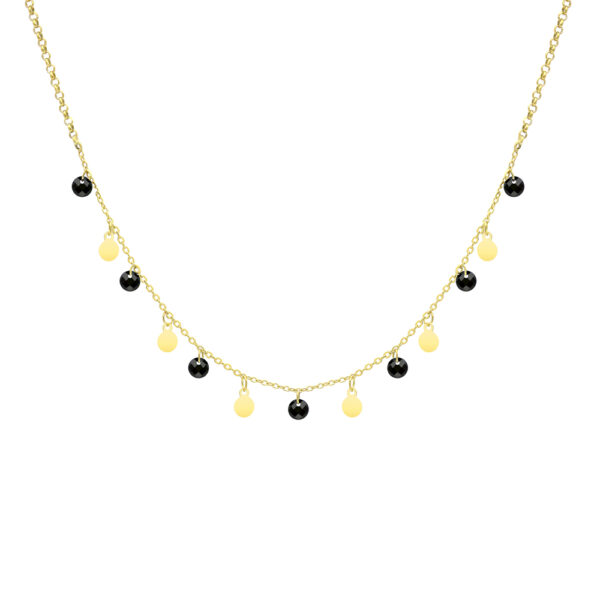 Choker z blaszkami srebrny pozłacany z czarnymi kryształkami