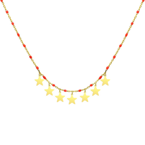 Naszyjnik Choker z Gwiazdkami wykonany ze Srebra Próby 925. Naszyjnik Choker uszlachetniony 3 mikronami 24 karatowego złota. Długość Chokera: 38-42 cm. Wielkość zawieszek: 8×8 mm. Naszyjnik Choker ozdobiony Emalią Jubilerską. Naszyjnik Choker ozdobiony zawieszkami w kształcie Gwiazdek, która jest najbardziej pożądanym dodatkiem tego sezonu. Naszyjnik Choker z Gwiazdkami pasuje do dzienniej jak i wieczornej stylizacji. Naszyjnik Choker idealnie uzupełni Twoją letnią kolekcję biżuterii !