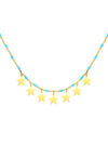Naszyjnik Choker z Gwiazdkami wykonany ze Srebra Próby 925. Naszyjnik Choker uszlachetniony 3 mikronami 24 karatowego złota. Długość Chokera: 38-42 cm. Wielkość zawieszek: 8×8 mm. Naszyjnik Choker ozdobiony Emalią Jubilerską. Naszyjnik Choker ozdobiony zawieszkami w kształcie Gwiazdek, która jest najbardziej pożądanym dodatkiem tego sezonu. Naszyjnik Choker z Gwiazdkami pasuje do dzienniej jak i wieczornej stylizacji. Naszyjnik Choker idealnie uzupełni Twoją letnią kolekcję biżuterii !