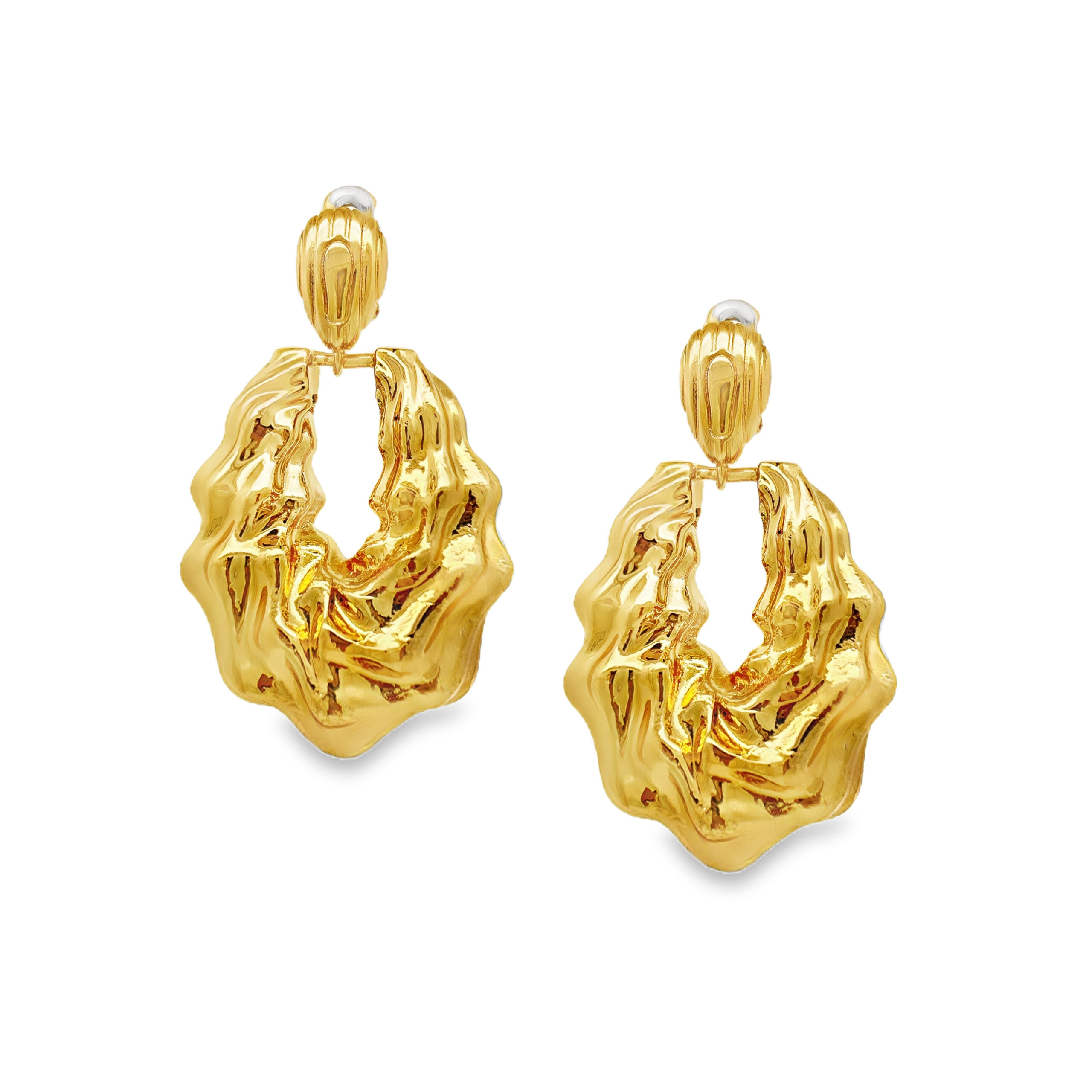Złota powłoka pięknie podkreśla każdy detal, dzięki czemu kolczyki prezentują się niczym luksusowy dodatek prosto z paryskiego wybiegu. To idealny wybór, jeśli chcesz wyróżnić się stylem i dodać swojej stylizacji nuty glamour.