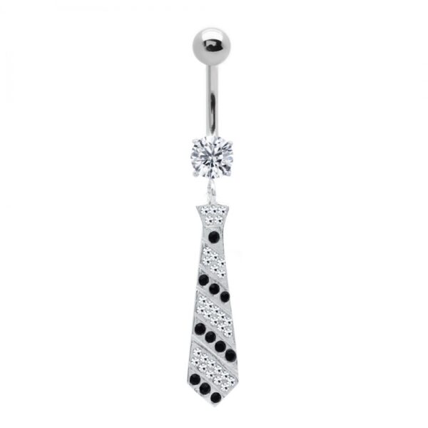 Kolczyk do pępka wykonany ze srebra próby 925. Górna część kolczyka wykonana ze stali chirurgicznej. Kolczyk ozdobiony białą cyrkonią. Wysokość części ozdobnej: 38 mm. Długość pręta: 10mm.