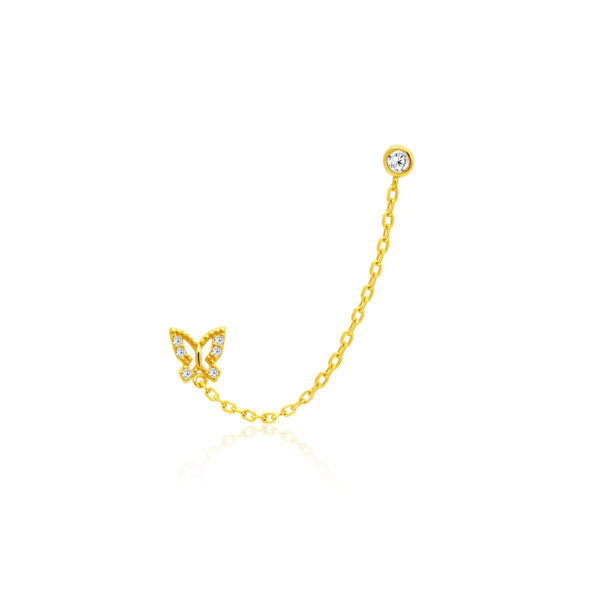 Kolczyk z łańcuszkiem srebrny pozłacany z motylkiem