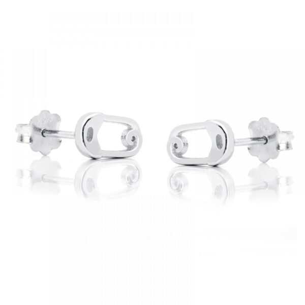 Kolczyki wkrętki wykonane ze srebra uszlachetnionego rodem próby 925. Wielkość części ozdobnej 7×5 mm