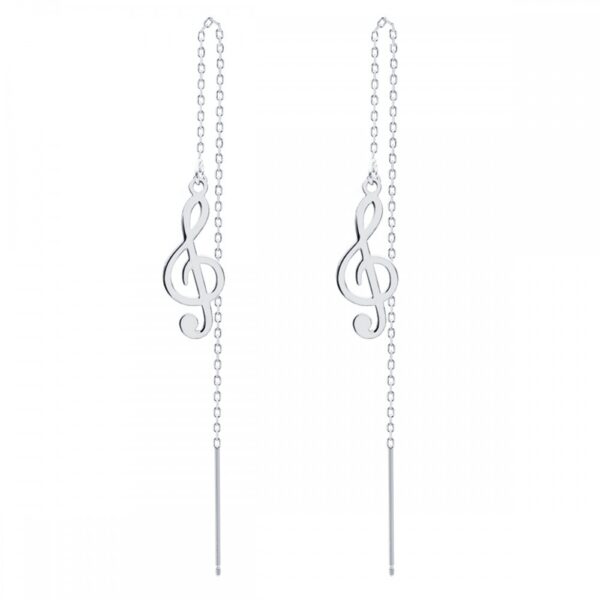 Kolczyki celebrytki klucz wiolinowy srebrne przeciągane