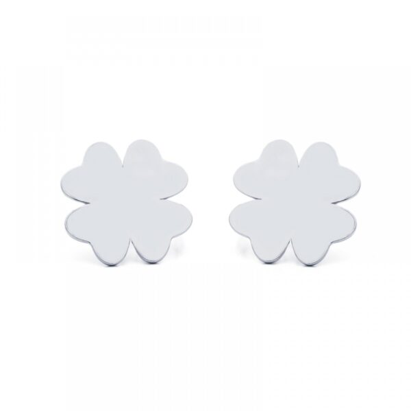 Kolczyki z kolekcji „Celebrytka” w kształcie koniczynki, wykonane ze srebra próby 925, dodatkowo uszlachetnione rodem. Wielkość kolczyków: 10×10 mm.