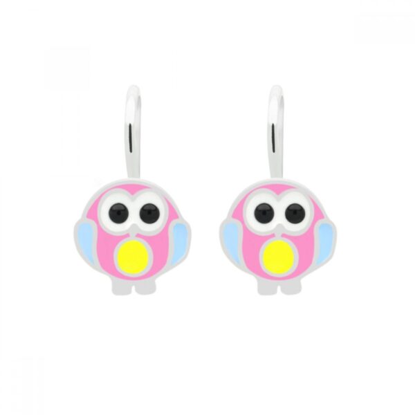 Kolczyki wykonane ze srebra próby 925. Kolczyki pokryte emalią jubilerską. Wielkość części ozdobnej: 9×7 mm. Zapięcie: bigiel zamknięty.