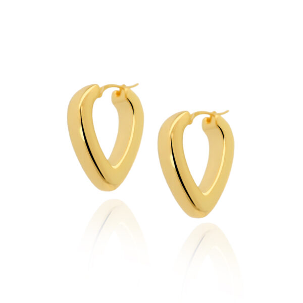 Kolczyki geometryczne V dmuchane srebrne pozłacane wykonane z najwyższej próby srebra 925 – bez dodatku niklu, nie uczulają. Kolczyki pokryte 3 warstwami 24 karatowego złota. Wysokość kolczyków: 30 mm, szerokość: 8 mm. Zapinane na zatrzask. Wyrób jubilerski wykonany z ogromną precyzją przez mistrzów jubilerstwa.