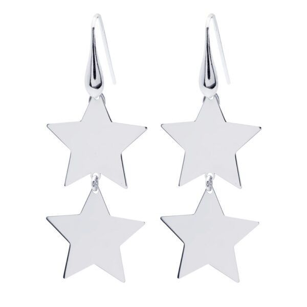 Kolczyki wykonane ze srebra próby 925, dodatkowo uszlachetnione warstwą rodu. Kolczyki w kształcie gwiazdek. Wielkość 60×20 mm. Zapinanie: bigiel otwarty.