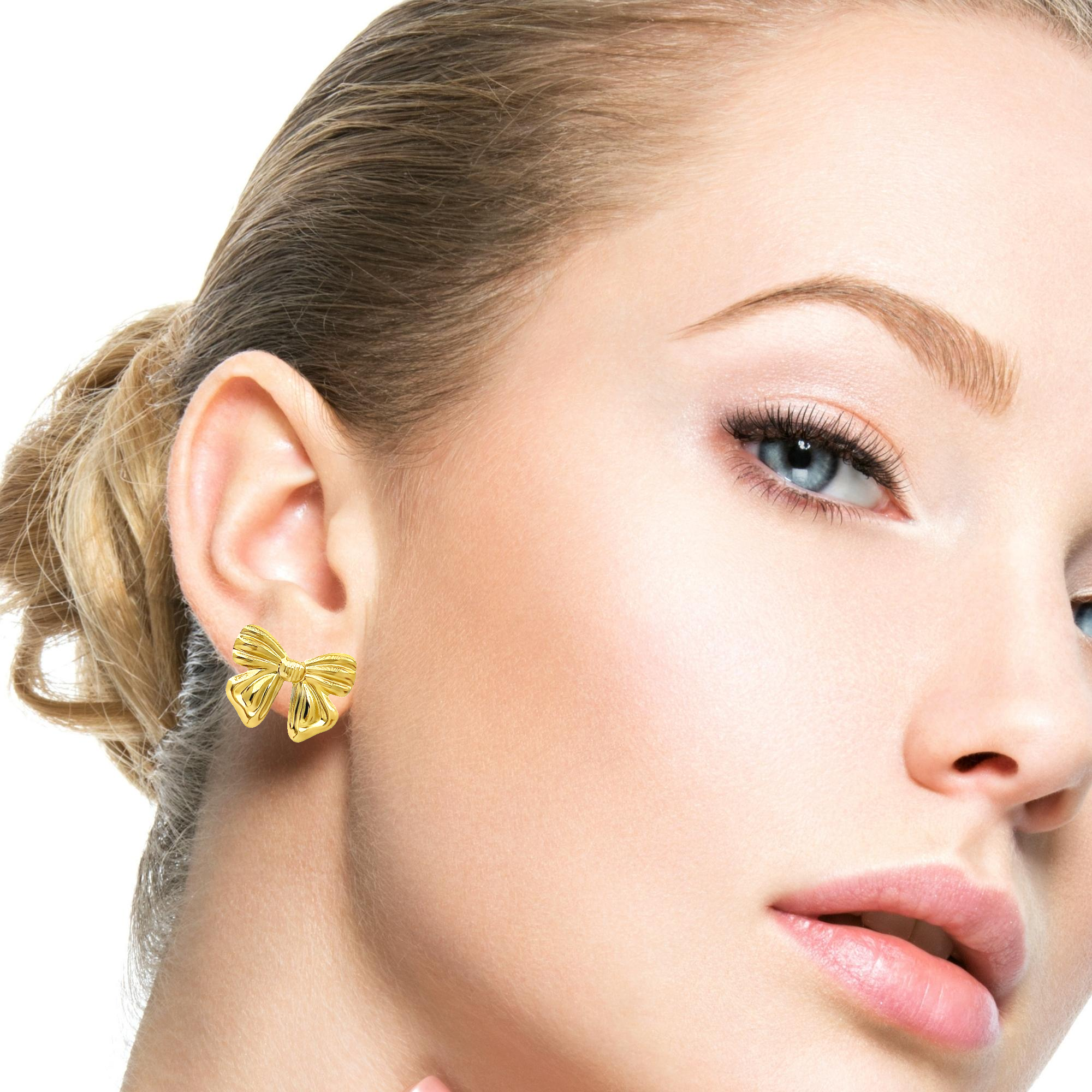 Złote kolczyki w kształcie kokardek to subtelny ukłon w stronę kobiecości i romantycznych detali. Ich delikatna forma nadaje lekkości każdej stylizacji – zarówno tej codziennej, jak i bardziej eleganckiej. Kokardka to ponadczasowy symbol wdzięku i uroku, dlatego ten model idealnie sprawdzi się jako prezent lub osobisty dodatek, który podkreśli Twoją wyjątkowość.