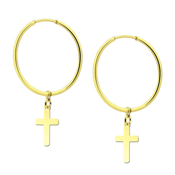 Kolczyki koła 35 mm srebrne pozłacane z krzyżykami