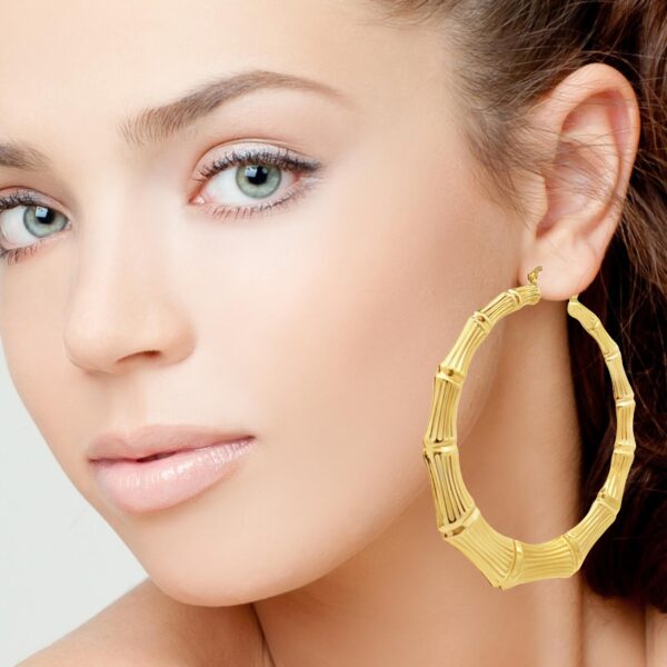 Kolczyki koła duże z motywem bambusu ze stali szlachetnej
