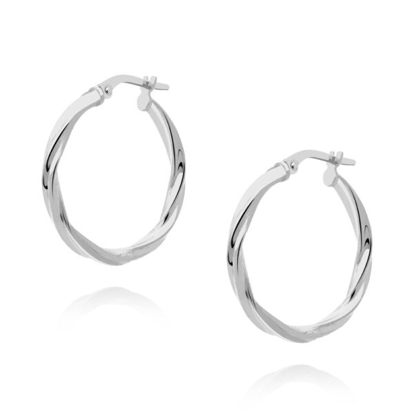 Kolczyki koła kręcone srebrne 24 mm wykonane z najwyższej próby srebra 925 – bez dodatku niklu, nie uczulają. Kolczyki pokryte 3 warstwami szlachetnego rodu. Średnica kolczyków: 24mm. Zapinane na zatrzask. Wyrób jubilerski wykonany z ogromną precyzją przez mistrzów jubilerstwa.