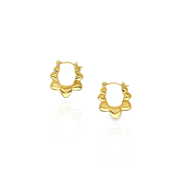 Te złote kolczyki zachwycają nietypową formą inspirowaną naturalnym ruchem fal i miękkimi liniami. Ich powierzchnia subtelnie załamuje światło, dodając twarzy blasku i lekkości. To idealny wybór dla kobiet, które lubią połączenie minimalizmu z artystycznym akcentem.