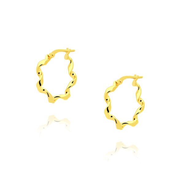Kolczyki koła sprężynki srebrne pozłacane 22 mm wykonane z najwyższej próby srebra 925 – bez dodatku niklu, nie uczulają. Kolczyki pokryte 3 warstwami 24 karatowego złota. Średnica kolczyków: 22mm. Zapinane na zatrzask. Wyrób jubilerski wykonany z ogromną precyzją przez mistrzów jubilerstwa.