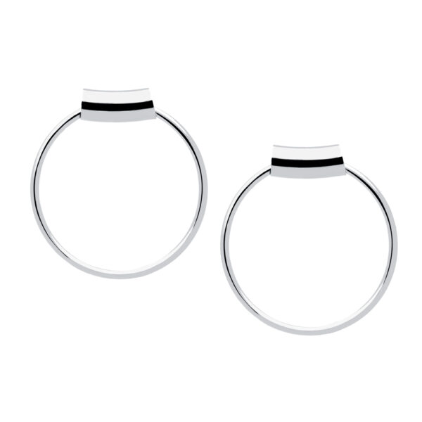 Kolczyki wykonane ze srebra próby 925. Kolczyki uszlachetnione warstwą rodu. Średnica kolczyków: 2.5 cm. Kolczyki zapinane na sztyft.