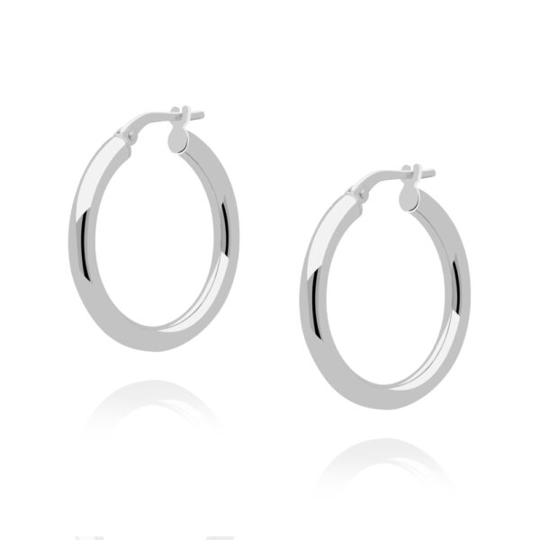Kolczyki koła srebrne 25mm o grubości 3mm wykonane z najwyższej próby srebra 925 – bez dodatku niklu, nie uczulają. Kolczyki pokryte 3 warstwami szlachetnego rodu. Średnica kolczyków: 25mm, grubość: 3mm. Zapinane na zatrzask. Wyrób jubilerski wykonany z ogromną precyzją przez mistrzów jubilerstwa.